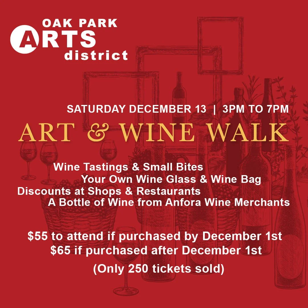 It’s a perfect time to treat yourself to some wonderful wines, magnificent art, delicious hors d’oeuvres and great holiday shopping – all in the historic Oak Park Arts District!