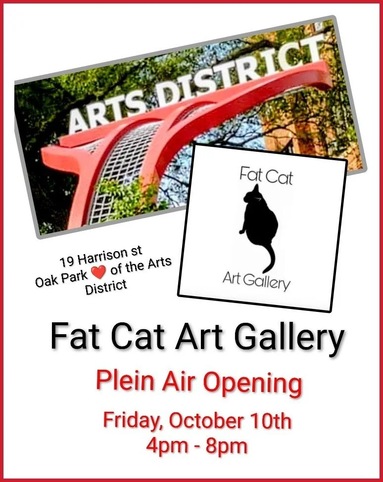 Fat Cat Art Gallery will host an exhibition of paintings painted during the recent Plein Air Painting Competition in Oak Park held in September. The festival included over 50 artists painting in the Oak Park area in early September. The paintings from the festival are of some of our favorite local landmarks and locations.